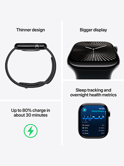 Display: Features an Always-On Retina LTPO3 display, which is the largest and most advanced Apple Watch display yet. It offers significantly more screen area than previous generations and is brighter at an angle. New watch faces are designed to utilize the larger display.