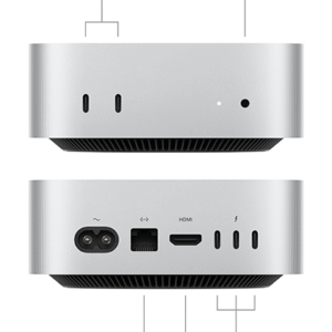 Connectivity: The base model has two Thunderbolt/USB 4 ports, while the higher-end models feature four Thunderbolt 4 ports, supporting up to two external 6K displays or one 8K display. Apple Support says it also supports Wi-Fi 6E, Bluetooth 5.3, and Gigabit Ethernet. The included Magic Keyboard and Magic Mouse/Trackpad now charge via USB-C.