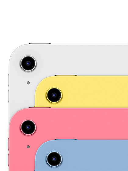 Features a Landscape 12MP Center Stage front camera (ƒ/2.4 aperture) designed for video calls and selfies, keeping the user in the center of the frame.