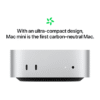 The Mac mini is available with the Apple M4 or M4 Pro chip. The M4 features a 10-core CPU and GPU, and a 16-core Neural Engine. The M4 Pro offers a 12 or 14-core CPU, a 16 or 20-core GPU, and a 16-core Neural Engine, providing faster performance than the M4. Both chips support Apple Intelligence features.