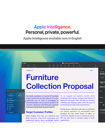 Apple Intelligence: Integrates with Apple’s personal intelligence system for tasks like writing assistance, image generation, and improved Siri functionality.